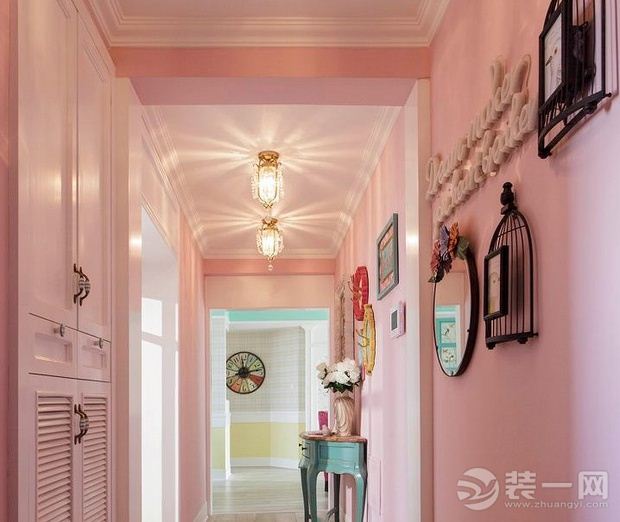 这是一套130平米的浪漫婚房,浅蓝色与粉色调的完美搭配,给人一种清新之感,营造出了轻松舒适的家居空间。